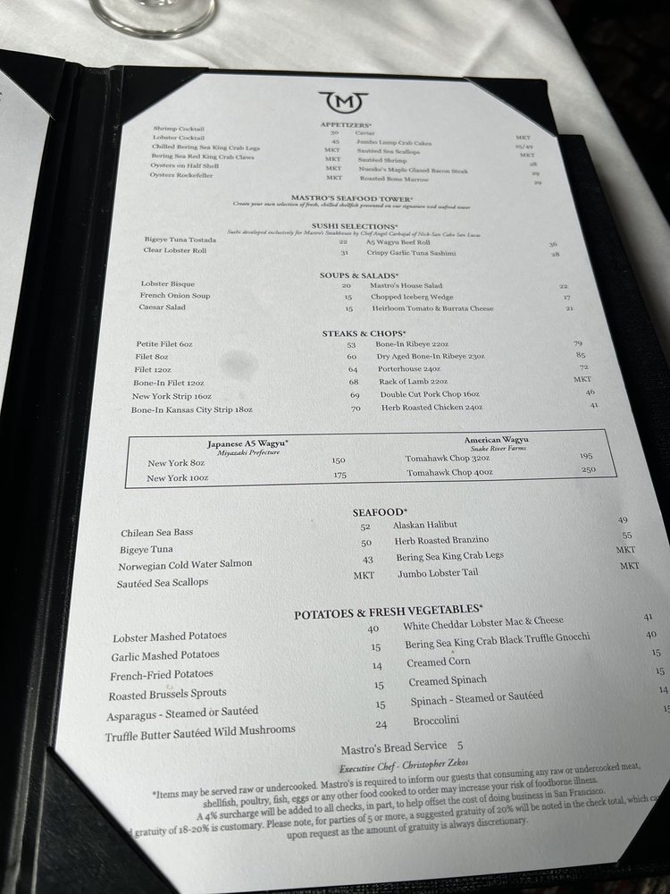 Mastro's Steakhouse, located at 399 Geary St San Francisco, is a trendy, intimate, and upscale dining experience offering a variety of options for its patrons. With takeout, delivery, and outdoor seating available, the restaurant caters to various preferences. The menu features keto and vegan options, making it inclusive for all diners. Customers have praised the impeccable service, delicious dishes like the Double Cut Pork Chop and Creamy Corn, and the elegant ambiance with live music. The restaurant's three floors offer different dining experiences, perfect for special occasions or cozy gatherings. With a full bar, attentive staff, and a diverse menu, Mastro's Steakhouse is a must-visit destination for those looking for a top-notch dining experience.